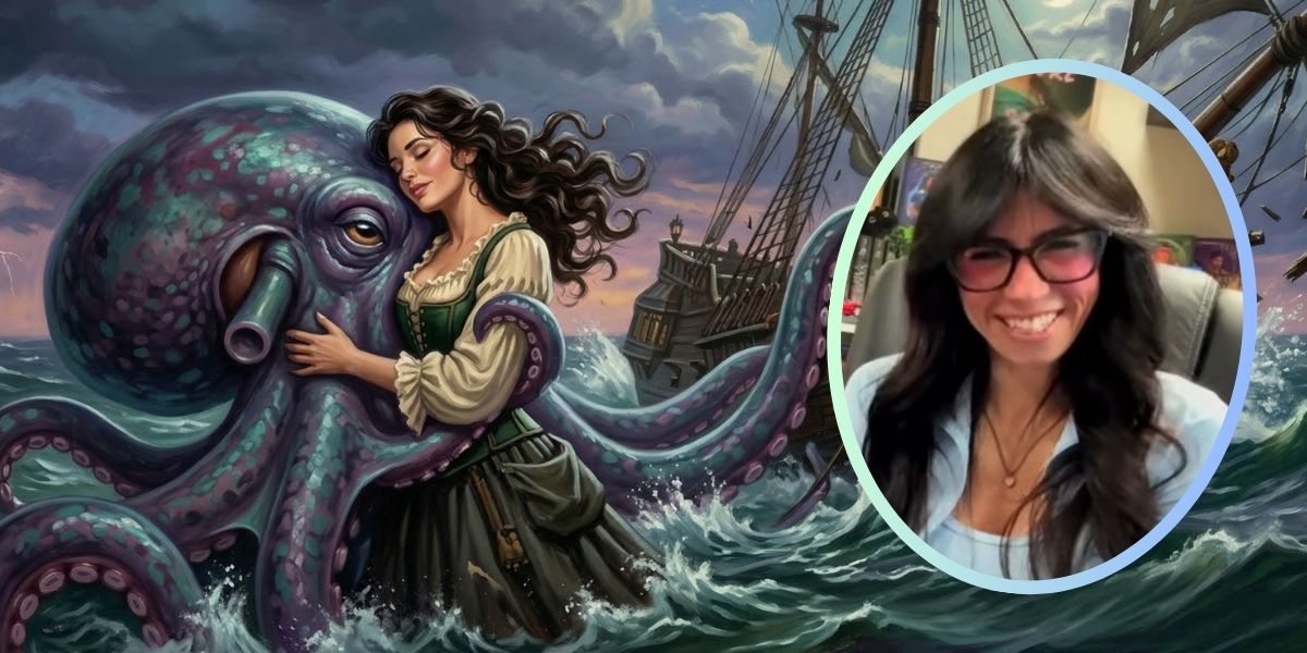 “He’s an octopus, like a big monstrous one,” Sarah explained on the broadcast. “I read a lot of monster romance novels, so I don’t imagine him as a human.”